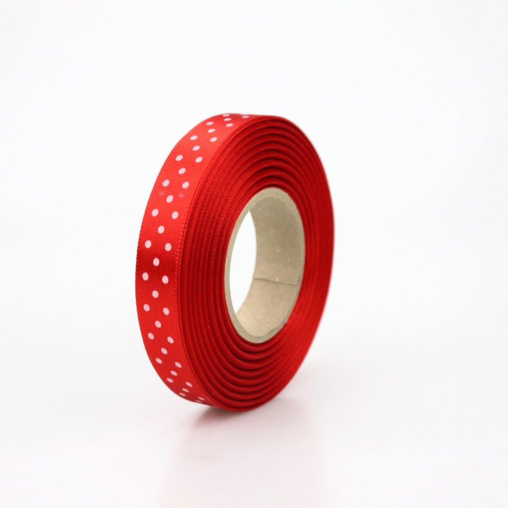 Atlasová stuha 15 mm s puntíky 20 m červená.