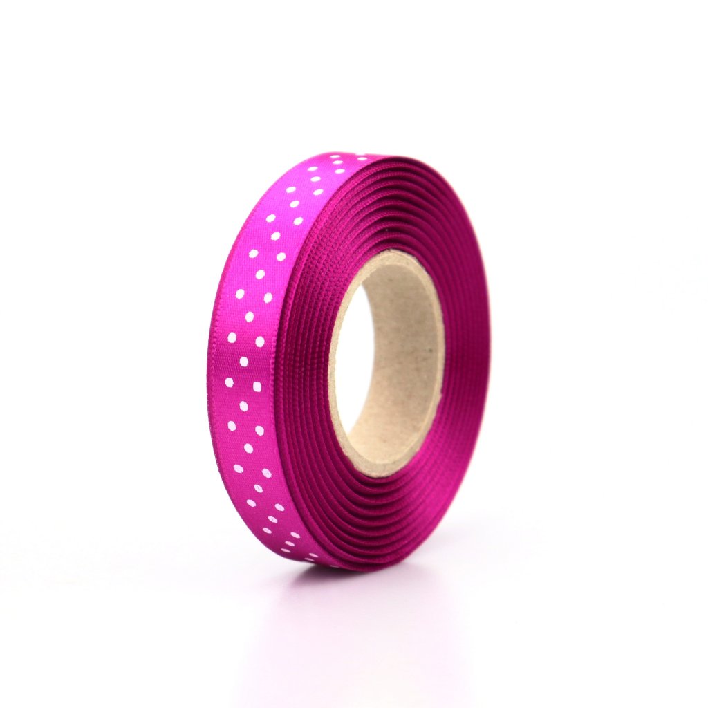 Atlasová stuha 15 mm s puntíky 20 m fuchsiová.