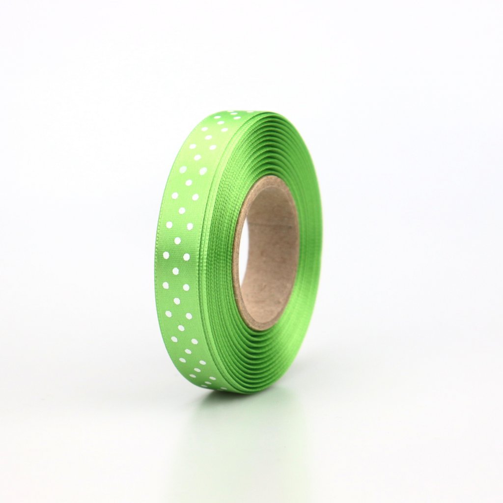 Atlasová stuha 15 mm s puntíky 20 m světle zelená.