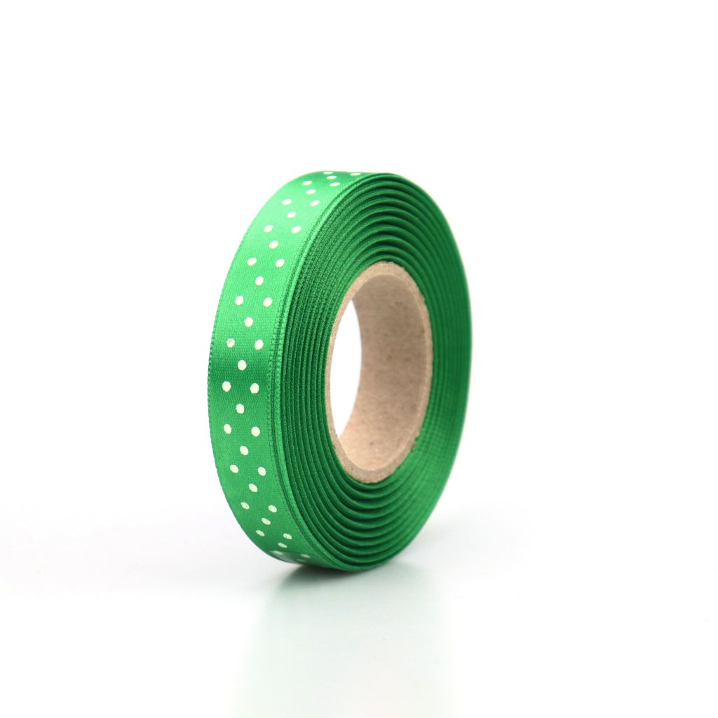 Atlasová stuha 15 mm s puntíky 20 m tmavší zelená