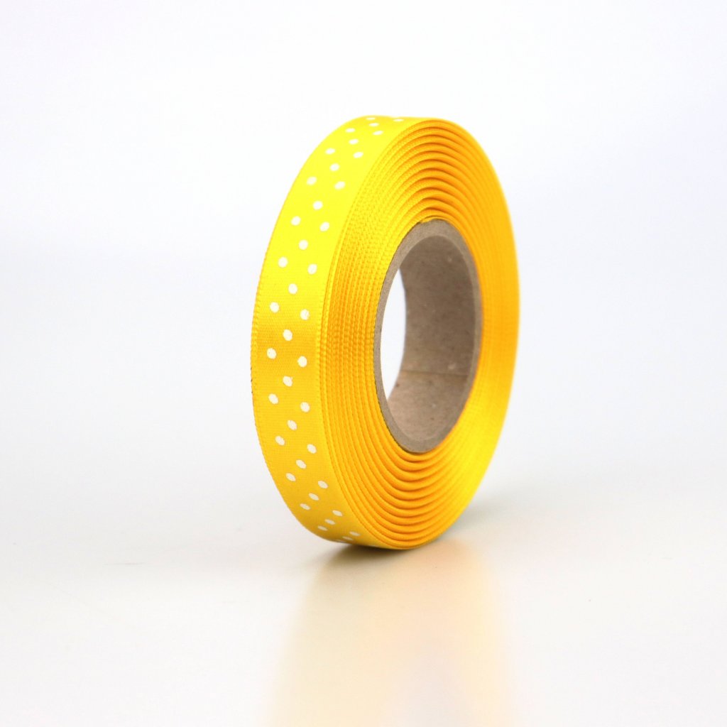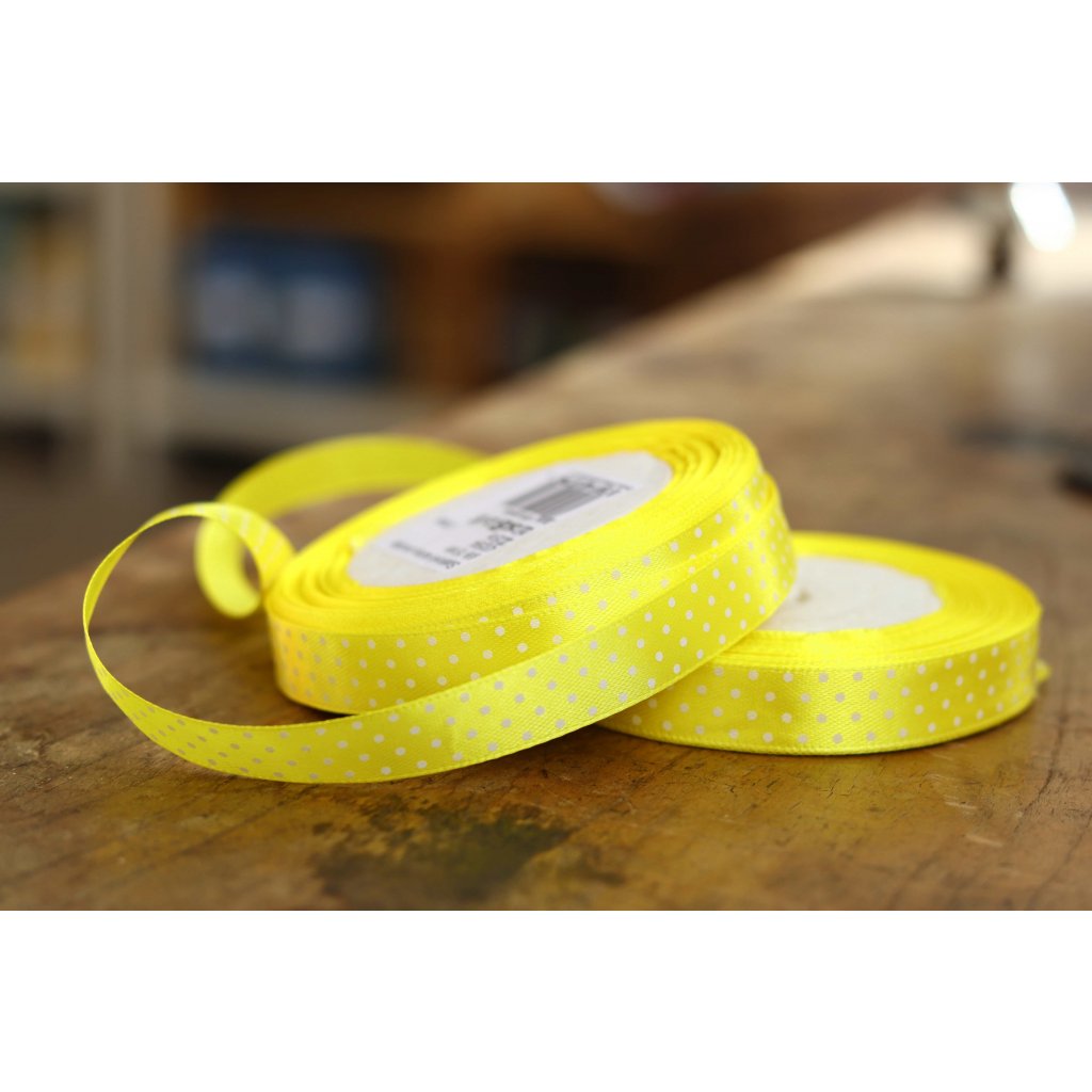 Atlasová stuha 15 mm s puntíky 20 m žlutá.