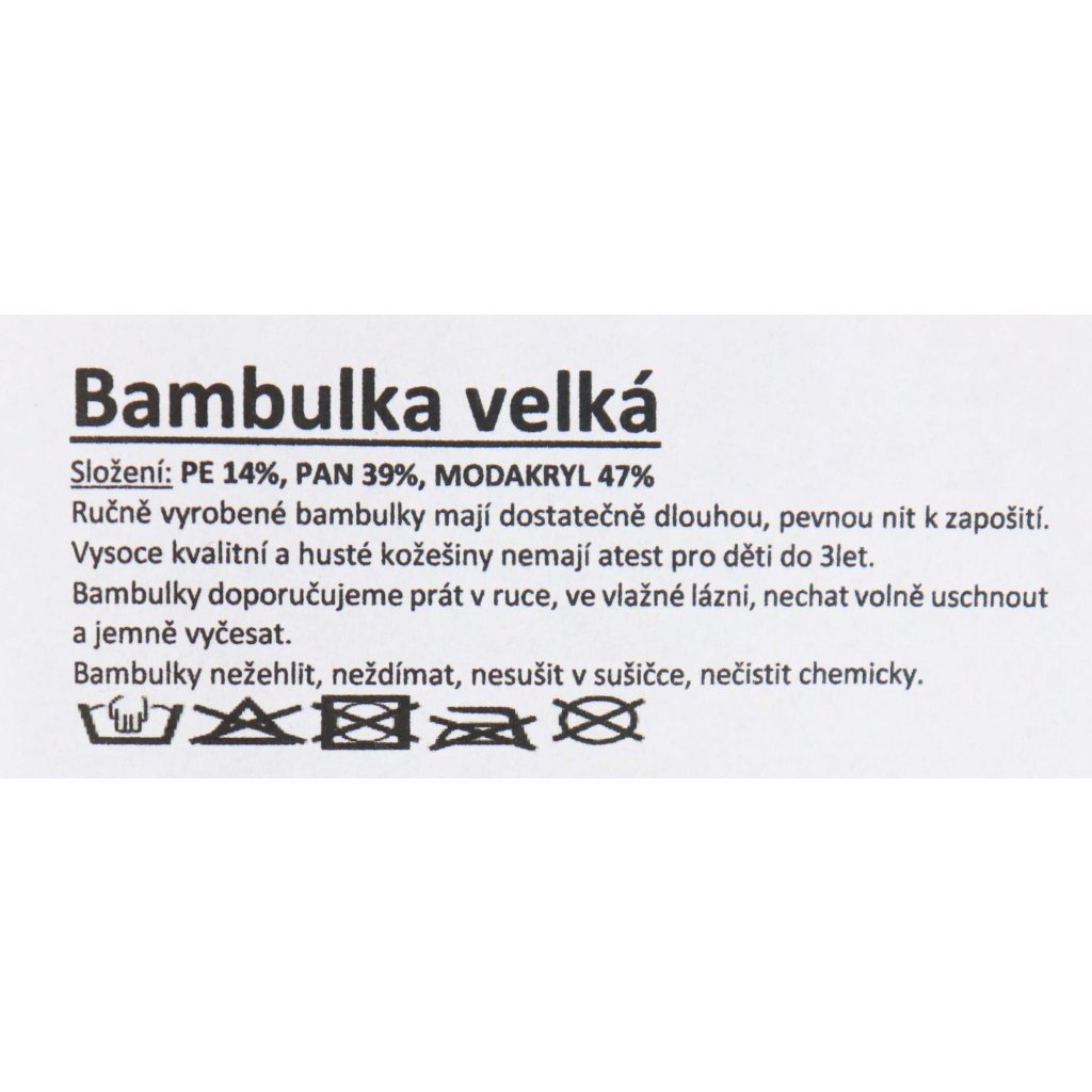 Bambule jsou vhodné jako dekorace ke kabelce, na čepice a to nejen dětské, dále můžete využít na zvířátka a další.