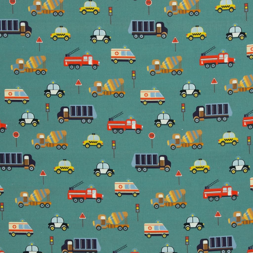 Tato bavlněná látka z kolekce Bill potěší všechny malé fanoušky aut a strojů. Na kvalitním bavlněném plátně se střídají oblíbená dopravní vozidla jako hasičské auto, policejní vůz, sanitka, míchačka nebo nákladní automobil. Výrazné barvy a hravý design dělají z této látky ideální volbu pro kreativní dětské projekty.