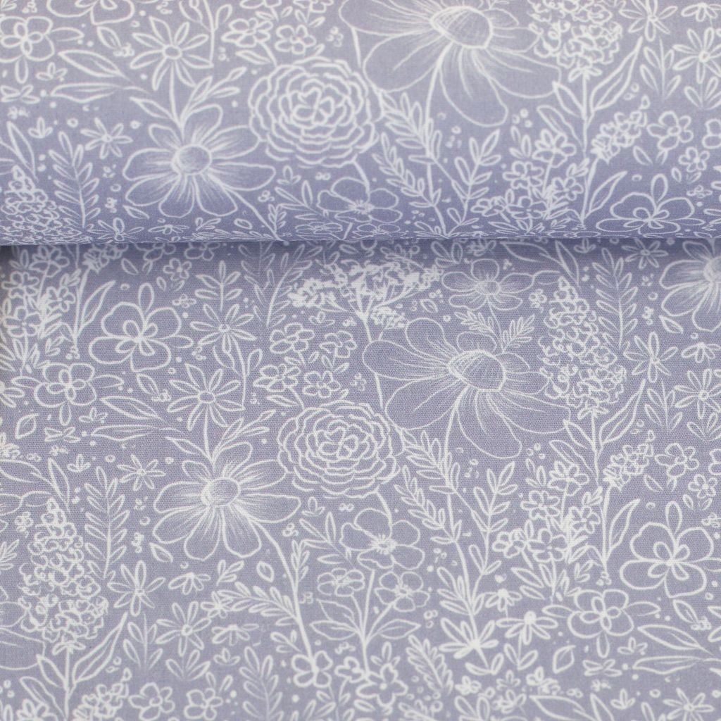 Tato jemná bavlněná látka z kolekce Garden of Dreams, navržená designérkou Claire z Claire's Creative Forest, vnese do vašeho interiéru i šatníku klidnou krásu přírody. Motiv květin a větviček v ručně kresleném stylu krásně vyniká na elegantním šedém podkladu a působí něžně, vkusně a nadčasově.