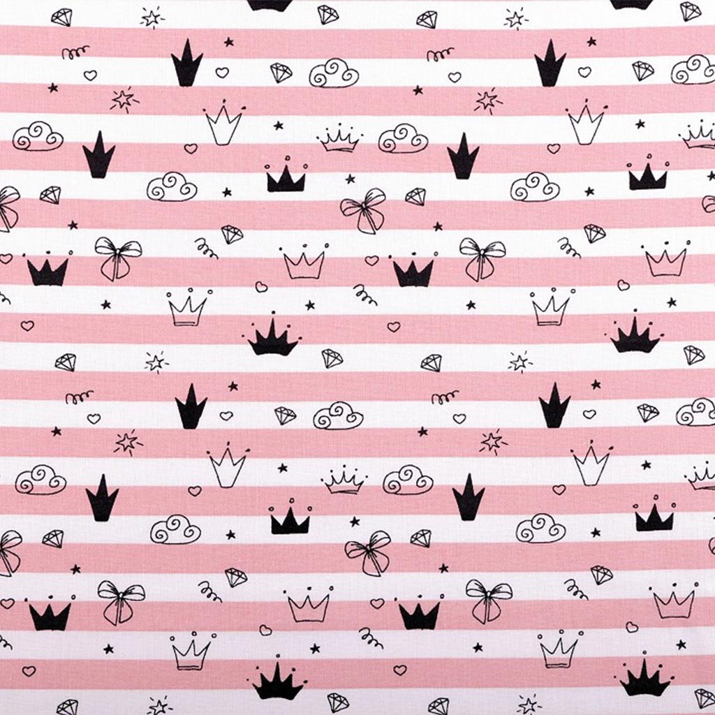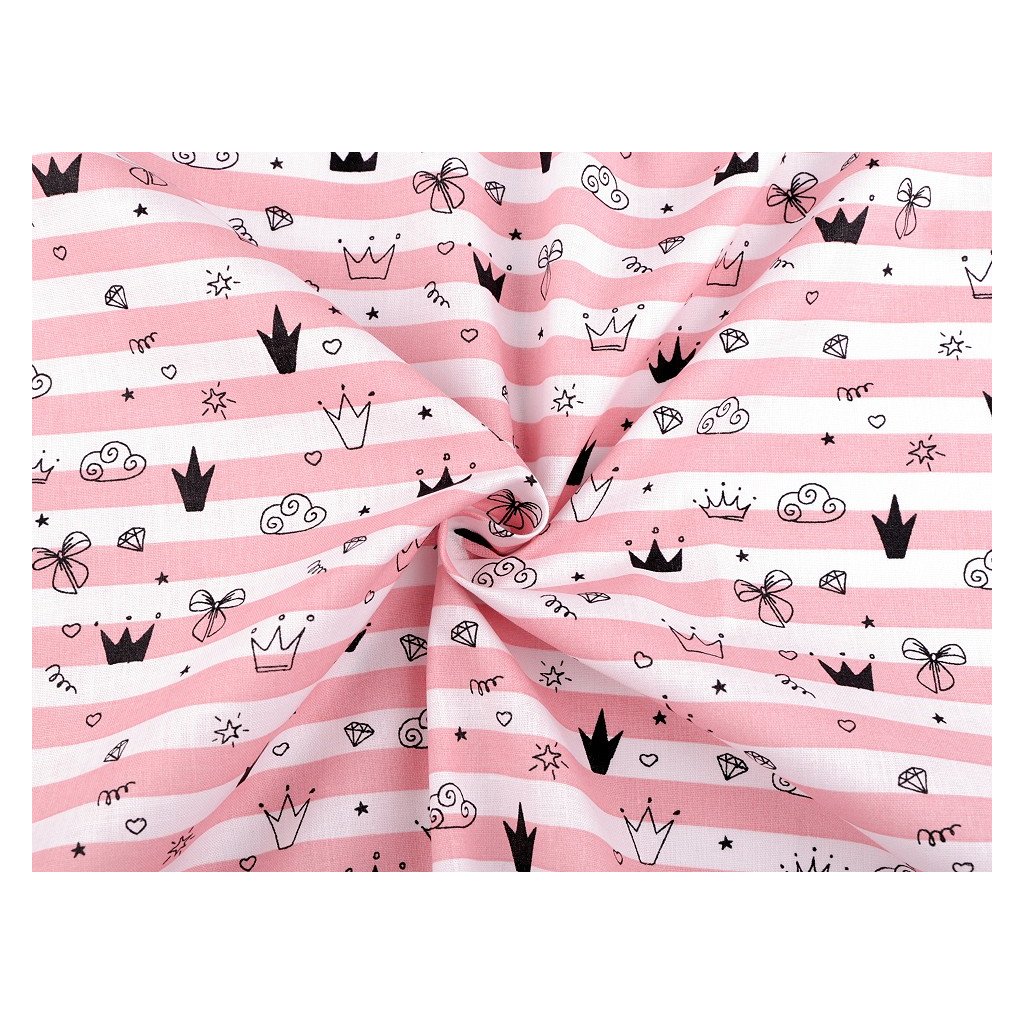 Bavlněná látka korunky na růžovém proužku 0,9 m