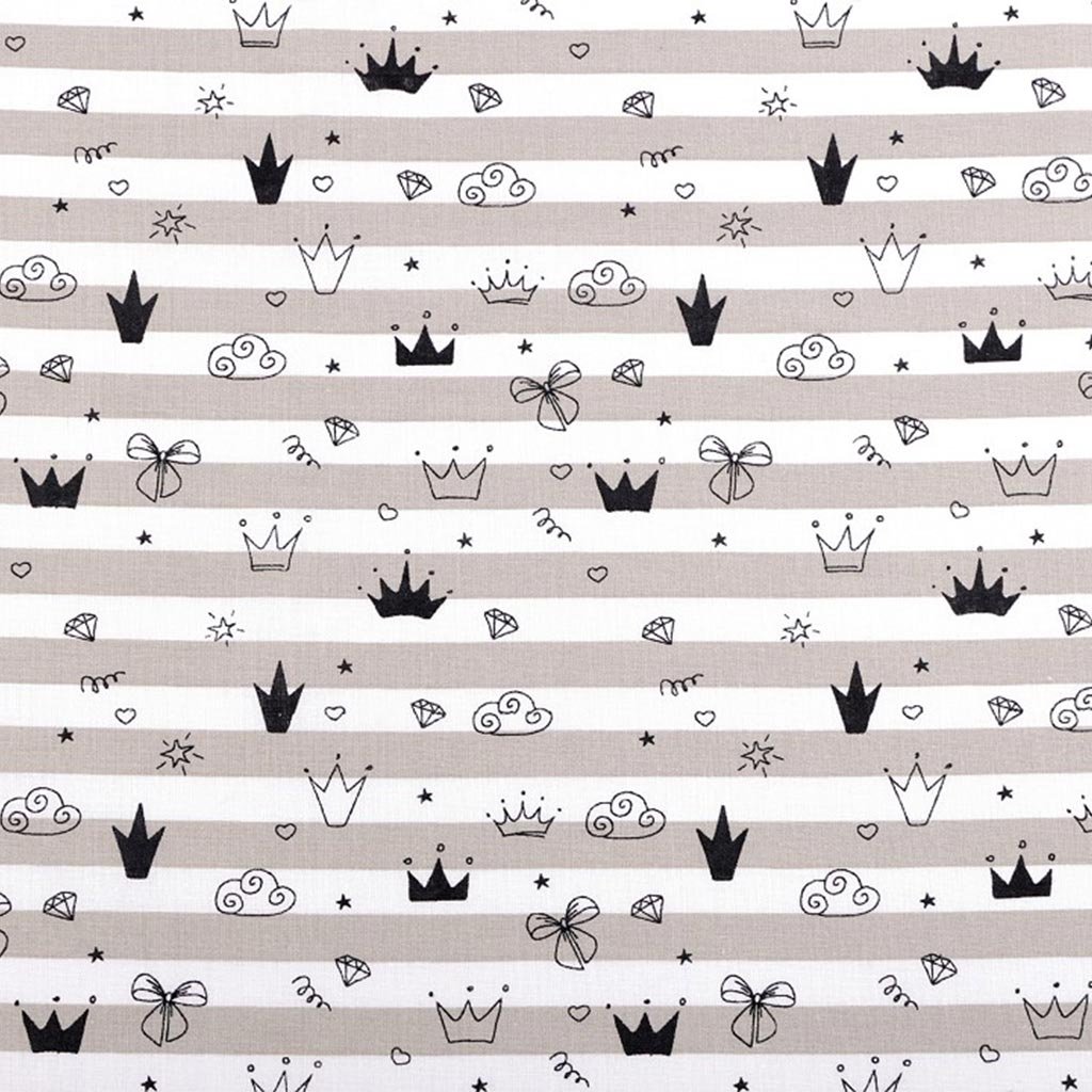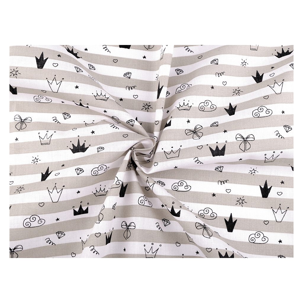 Bavlněná látka korunky na šedobéžovém proužku