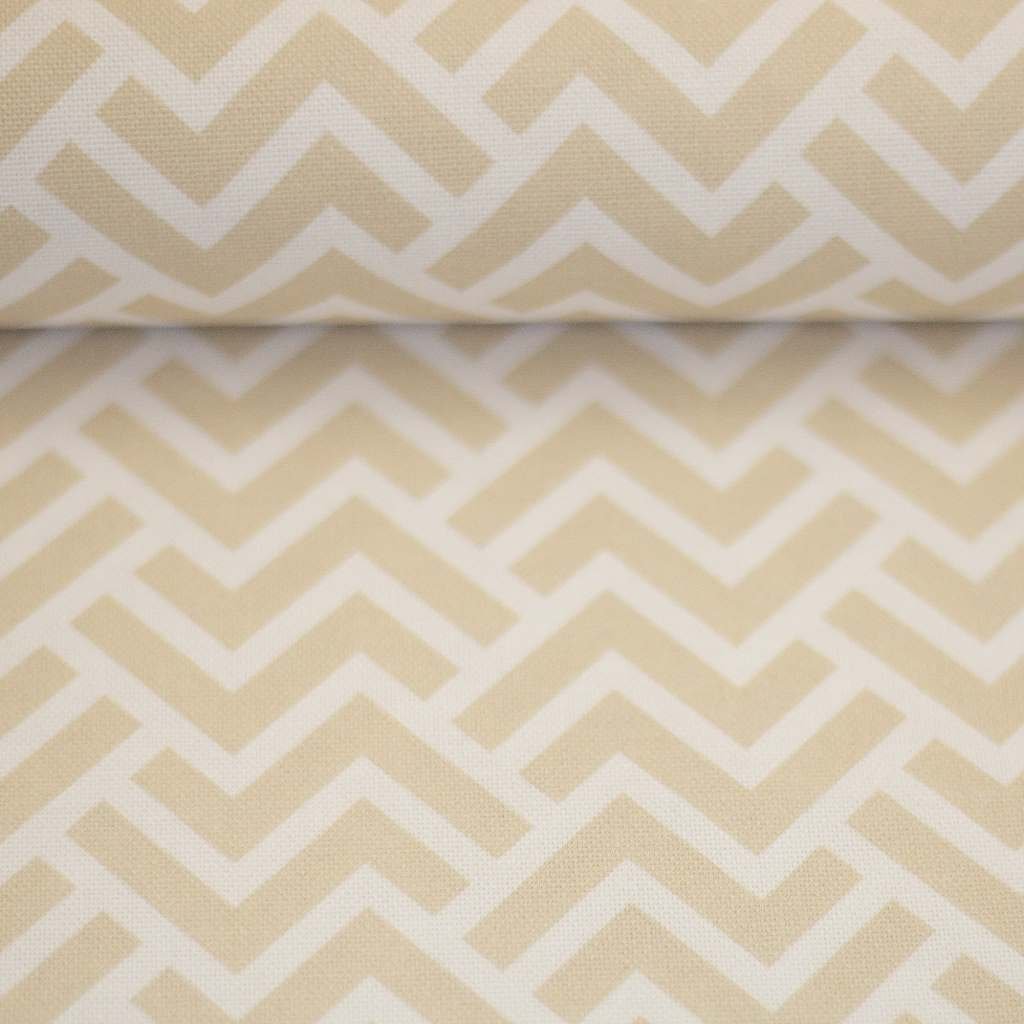Bavlněná látka Mona klikaté čáry béžová, bílá
