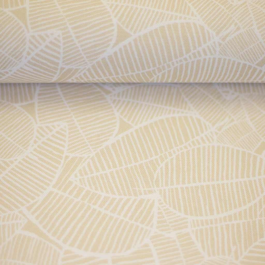 Bavlněná látka Mona listy béžová, bílá