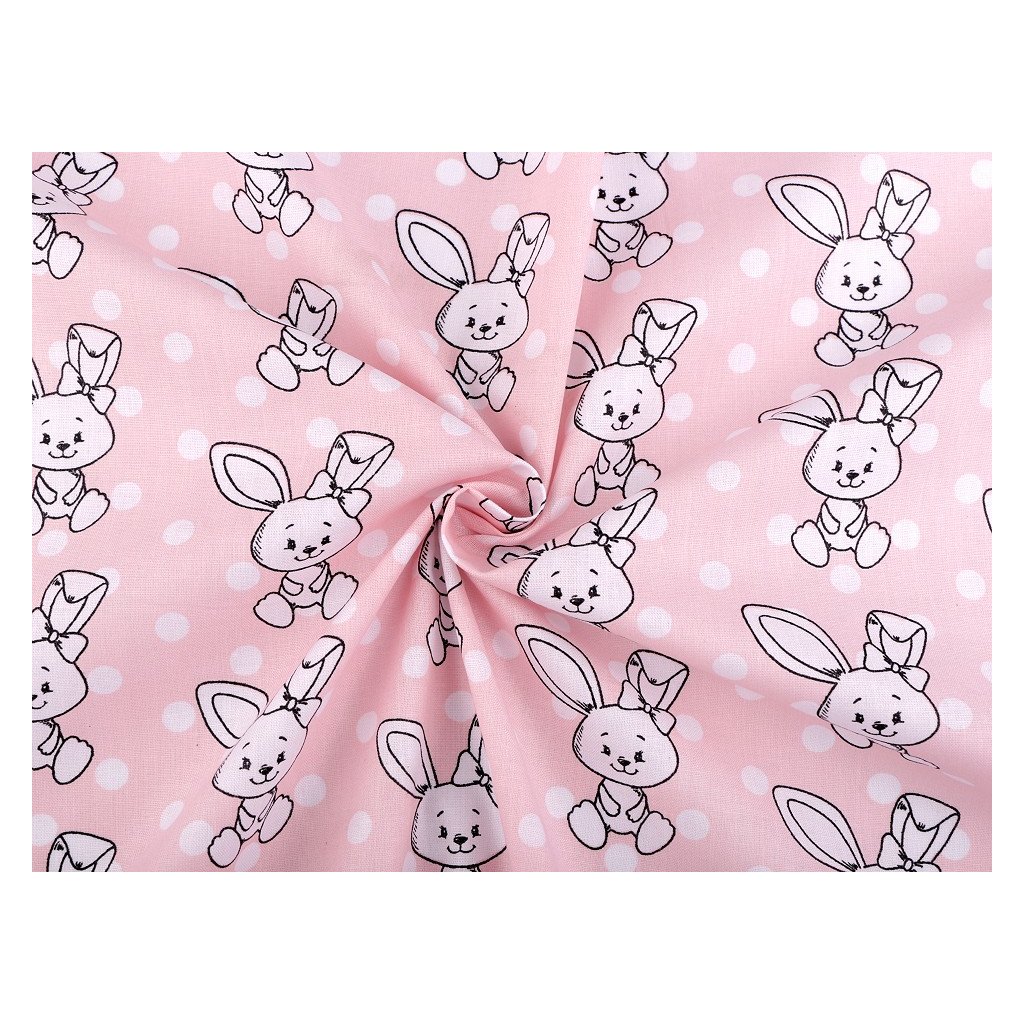 Bavlněná látka zaječice na světle růžové s puntíky. Složení: 100 % bavlna. Gramáž: 110 g/m². Šíře: 140 cm. Min. odběr 0,5 m; dále po 10 cm.Tuto látku doporučujeme, vzhledem k jejímu motivu, především na tvoření pro děti, povlečení, teepee stany, deky, hnízda, zavinovačky, usínáčky, hračky, závěsy, povlaky na polštáře.