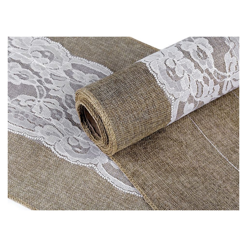 Dekorační látku ve spojení imitace juty s krajkou využijete k výrobě romantických doplňků, prostírání, štoly či ubrusu nebo k aranžování.