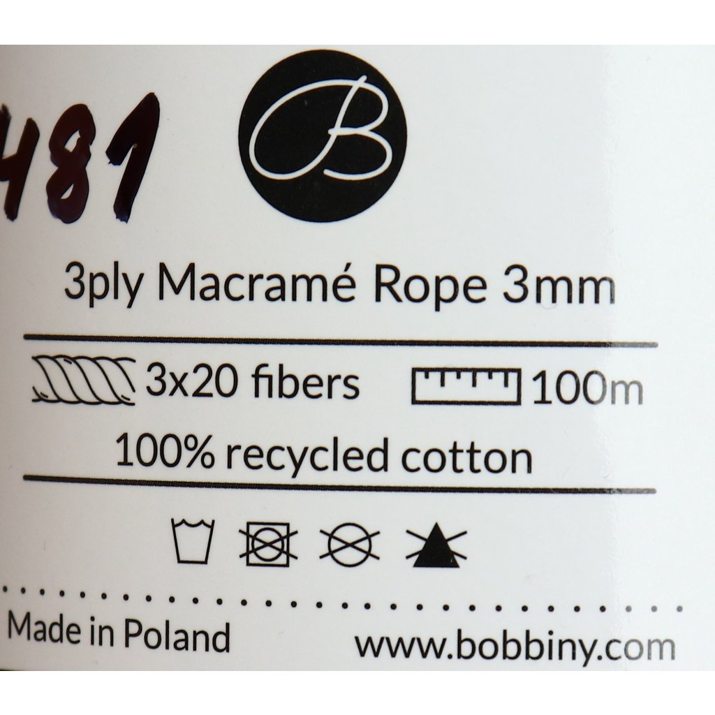 Bobbiny Macrame 3PLY regular jsou trojitě točené šňůrky, složené ze 60 jednoduchých nití, zkroucených třemi 20-nitkovými díly.