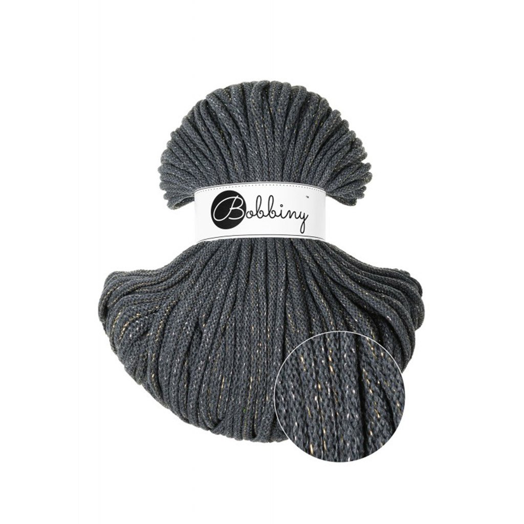 Bobbiny šňůry 5 mm Antracitové se zlatou a stříbrnou nitkou (Shiny Charcoal)