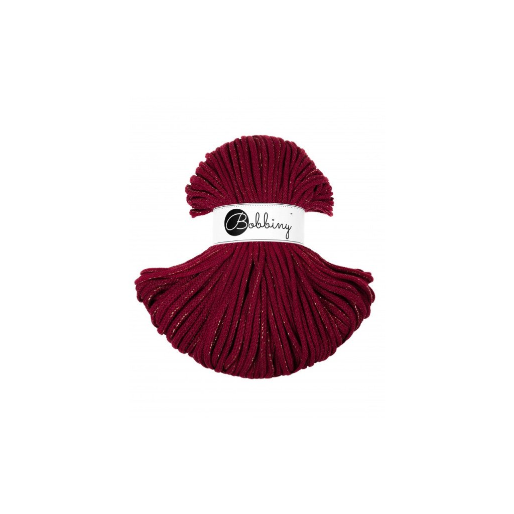 Bobbiny šňůry 5 mm Vínově červená se zlatou nitkou (Golden Wine Red)