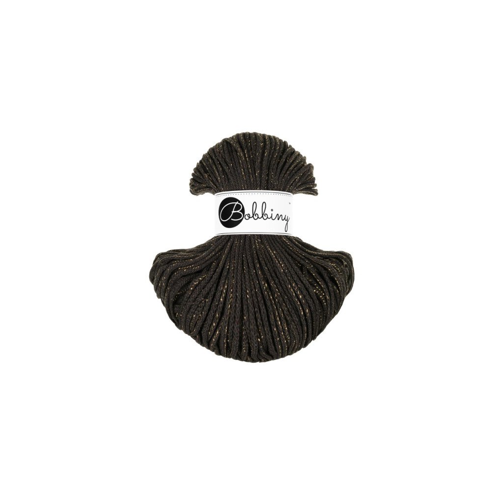 Bobbiny šňůry junior 3 mm Espresso se zlatou nitkou (Golden ESPRESSO).