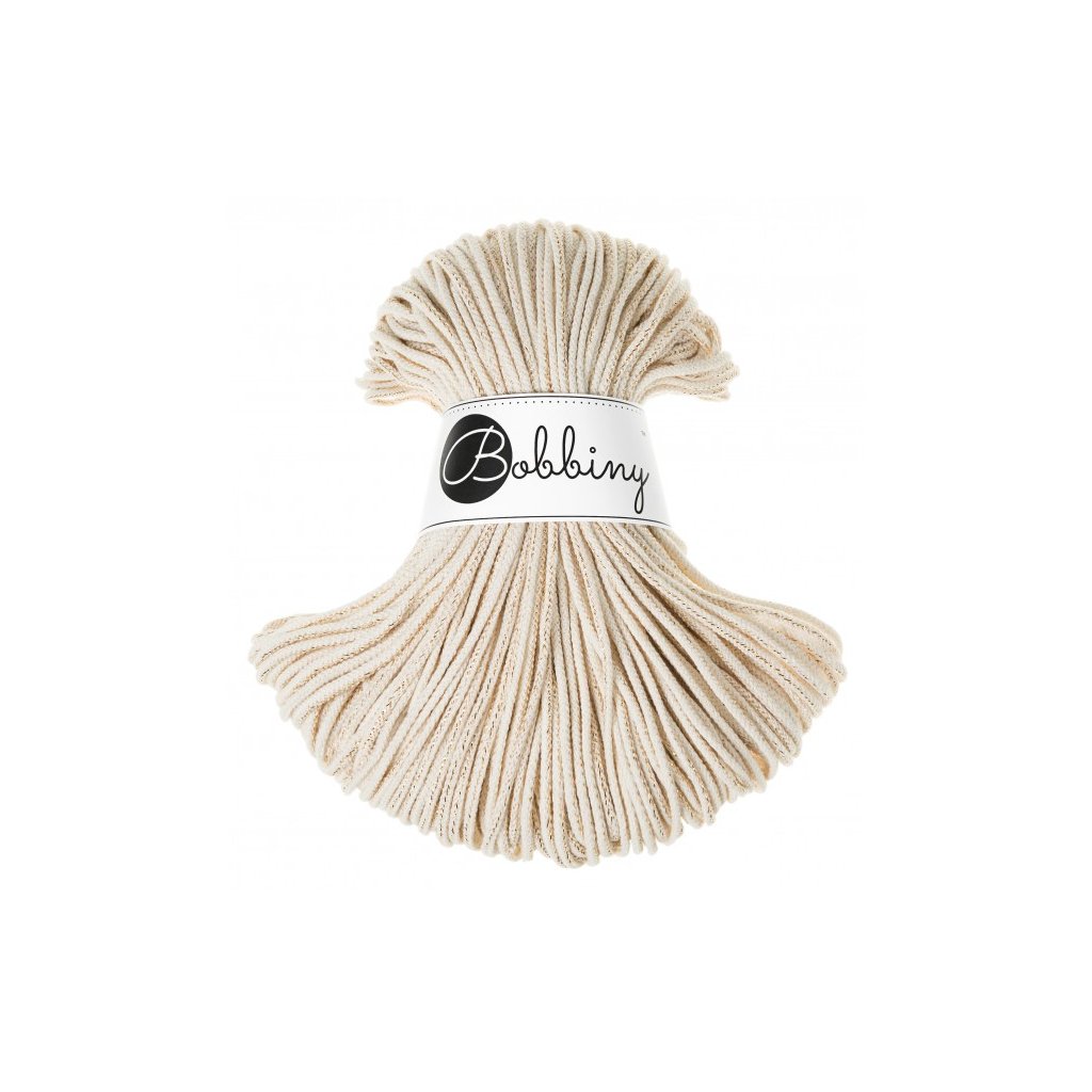 Bobbiny šňůry junior 3 mm Přírodní se zlatou nitkou (Golden Natural).