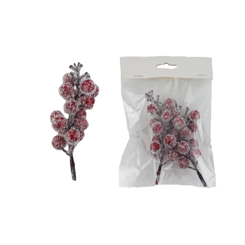 Dekorace napodobující větvičku červených ojíněných bobulí je velmi oblíbený materiál při výrobě podzimních a dušičkových věnců, ale díky své červené barvě vynikne i na vánočních věncích a jiných vánočních dekorací.