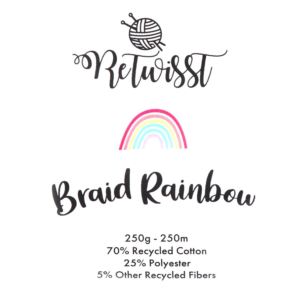 Příze Braid Rainbow od značky Retwisst je vyrobena z recyklovaných textilních vláken, což z ní činí ekologickou přízi bez chemického barvení.