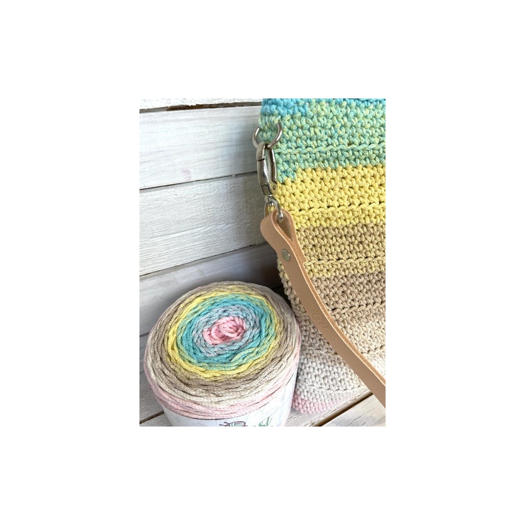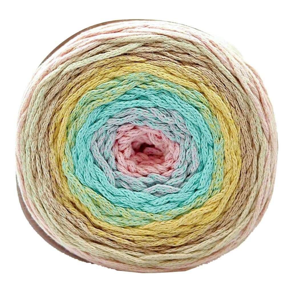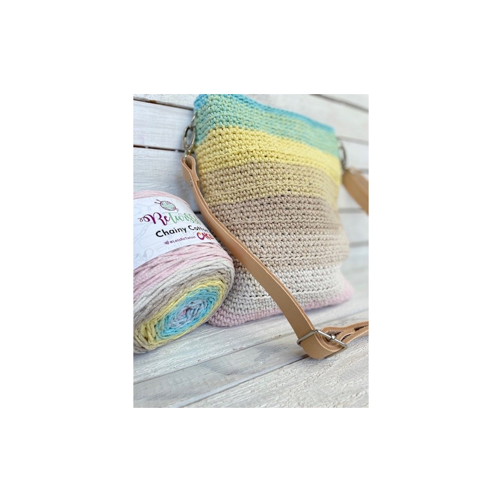 Chainy Cotton Cake je barevná samovzorovací "šňůrka" o průměru cca 2 mm (klubíčko v různých sytých a jemných odstínech, které v úpletu vytváří krásné barevné přechody a kombinace).