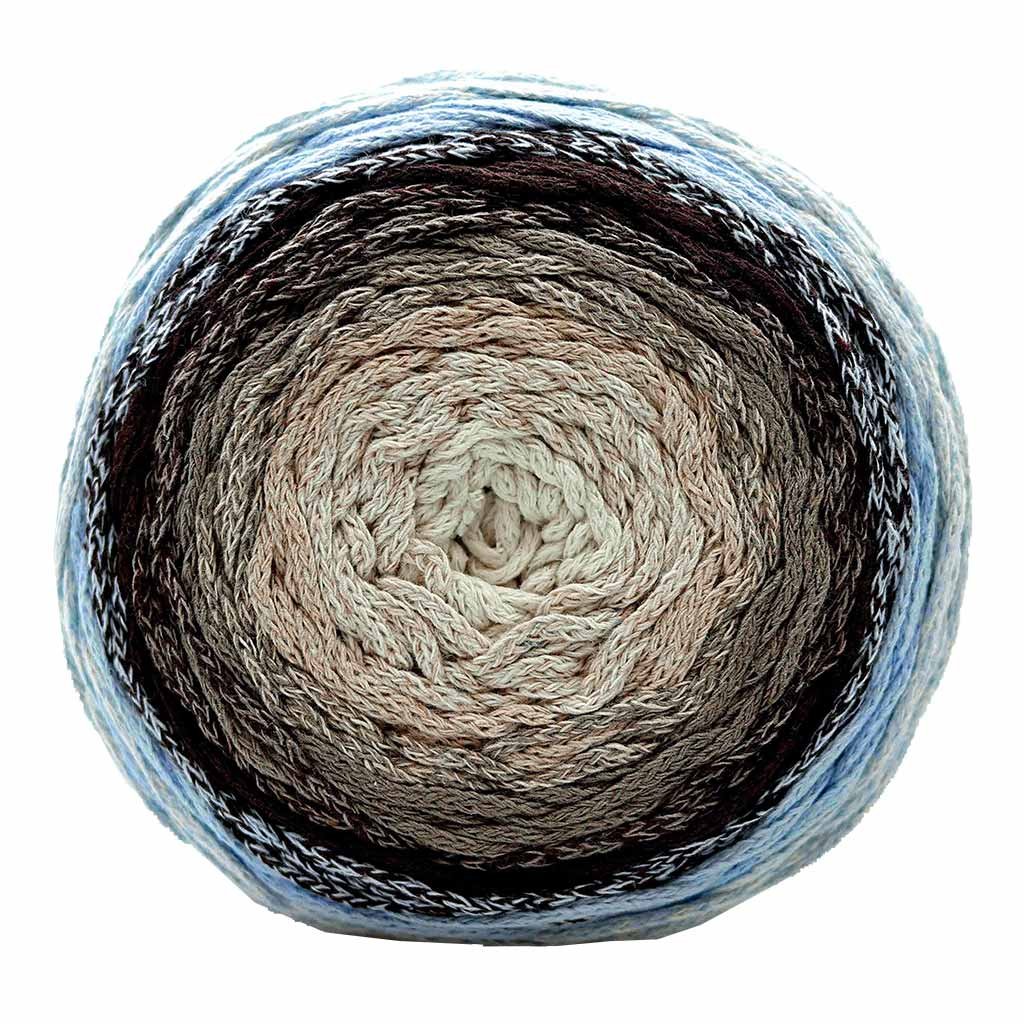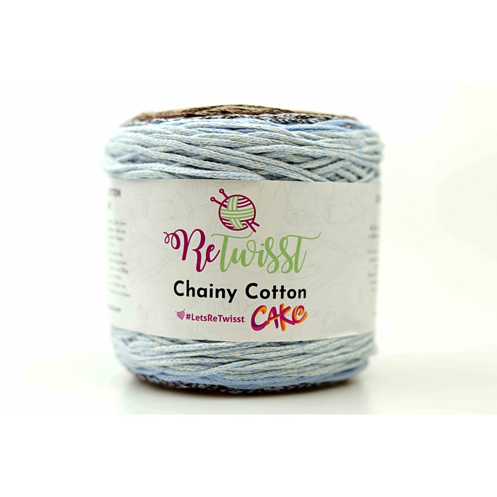 Chainy Cotton Cake ReTwisst 30 variace béžová, hnědá, světle modrá.