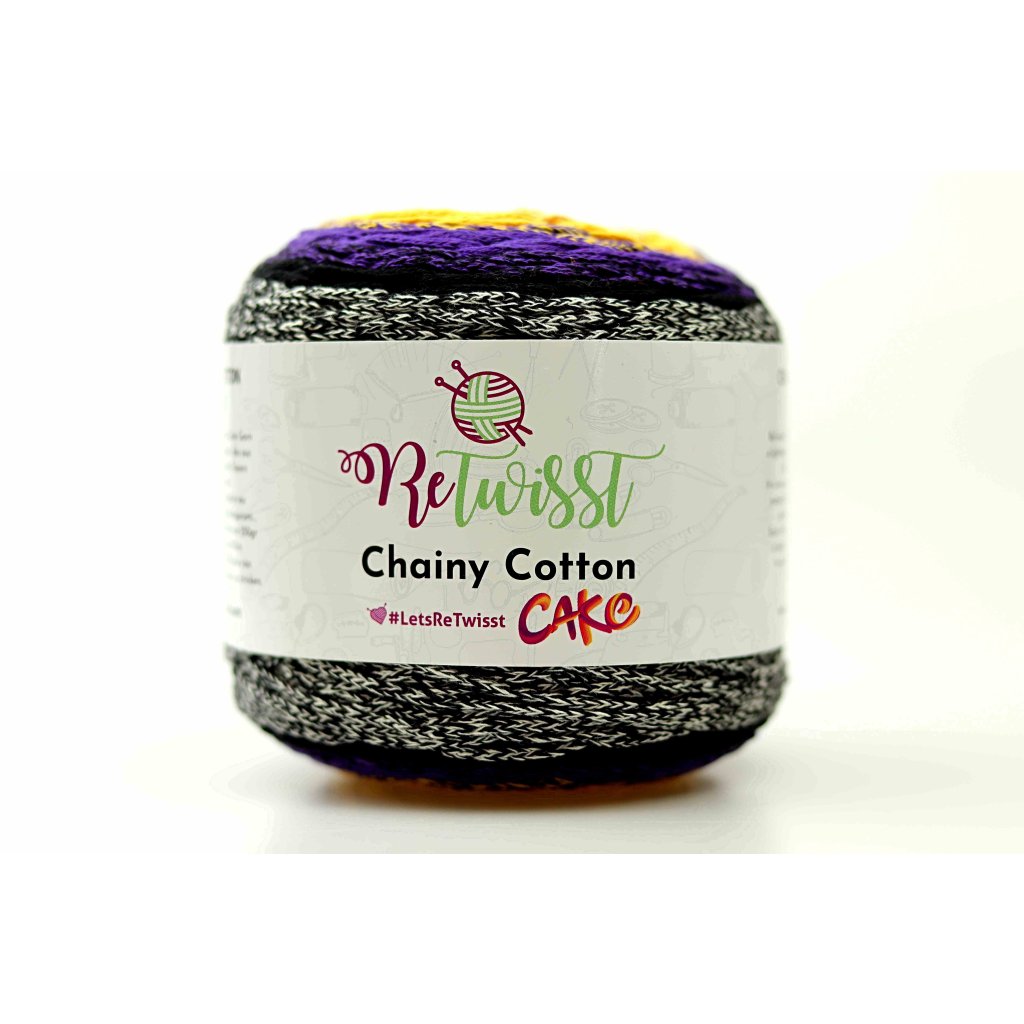 Chainy Cotton Cake ReTwisst 43 variace béžová, žlutá, fialová, černá.