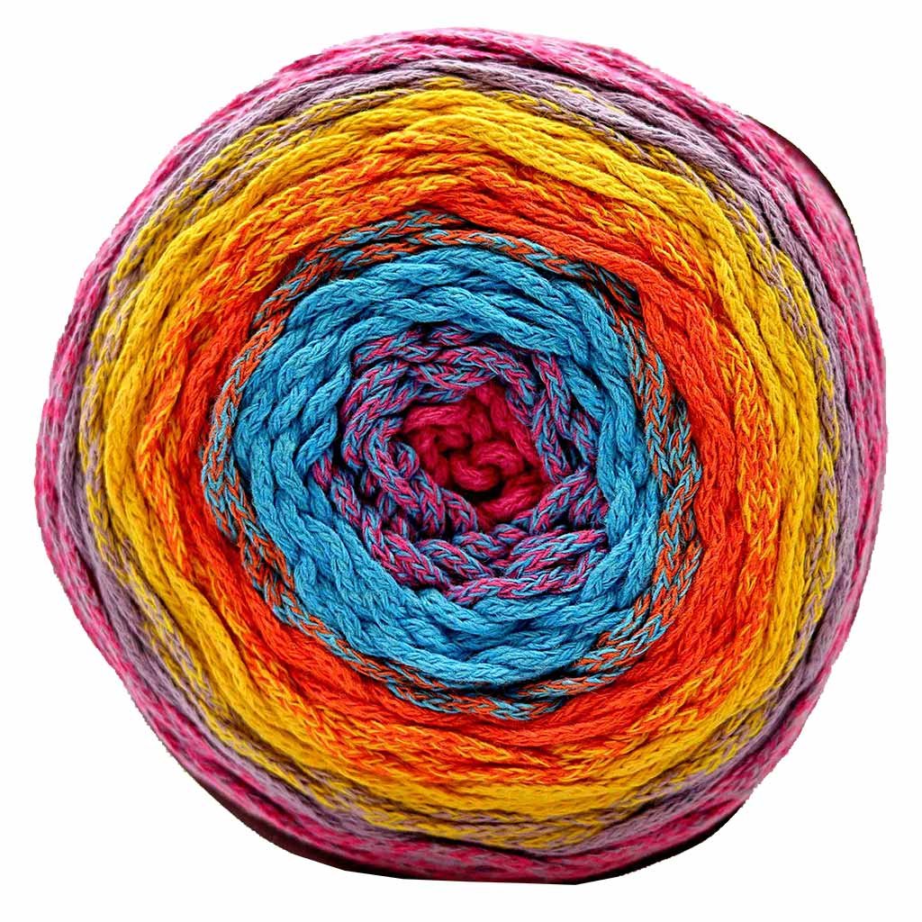 Chainy Cotton Cake je barevná samovzorovací "šňůrka" o průměru cca 2 mm (klubíčko v různých sytých a jemných odstínech, které v úpletu vytváří krásné barevné přechody a kombinace).