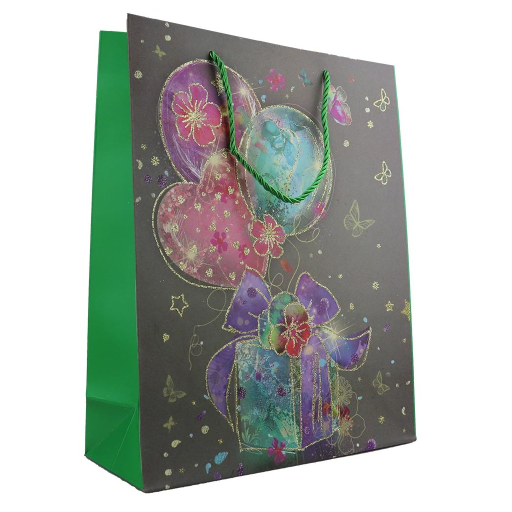 Dárková papírová taška s glitry je dokonalým spojením elegance a praktičnosti. Taška je vhodná na balení všech druhů dárků.