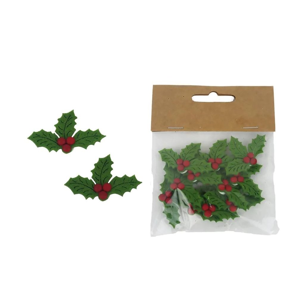 Dekorace ve tvaru cesmínového trojlístku s bobulemi je ideální pro sváteční i přírodní tvoření. V balení najdete 12 kousků zelených listů cesmíny spojených do trojlístku, doplněných o tři červené bobule uprostřed. Zadní strana je opatřena samolepicím kolečkem, díky kterému dekoraci snadno připevníte na papír, dřevo, plast i další povrchy bez potřeby lepidla. Hodí se k dozdobení přáníček, dárkových balení, vánočních dekorací, věnců nebo svátečních aranžmá.