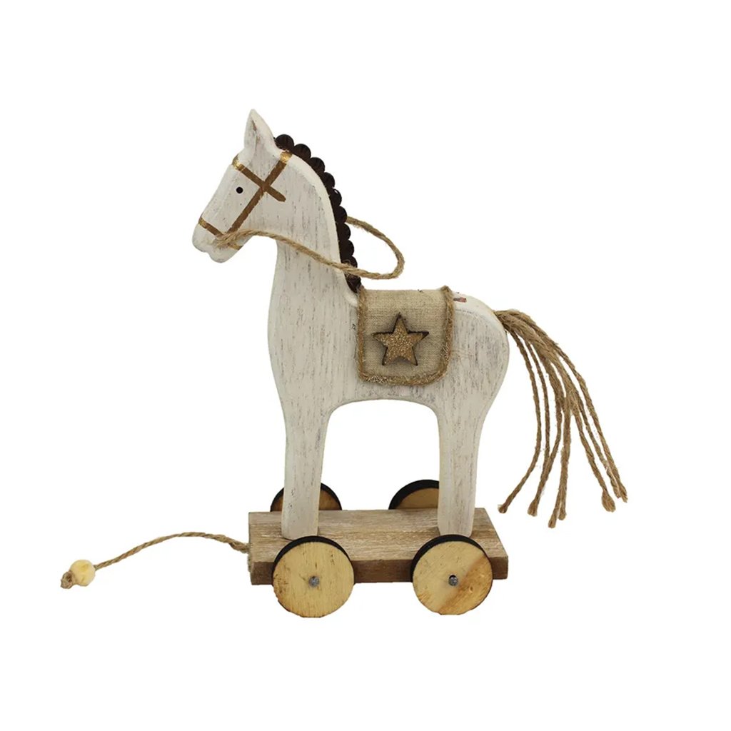 Dekorace dřevěný koník na kolečkách 12 x 6 x 18 cm bílý