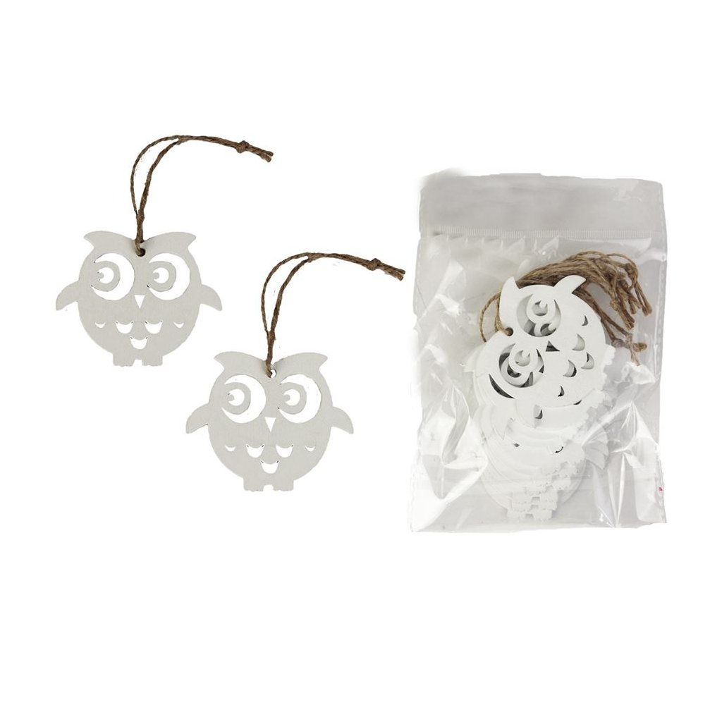 Dekorace k zavěšení sovička bílá, 10 ks