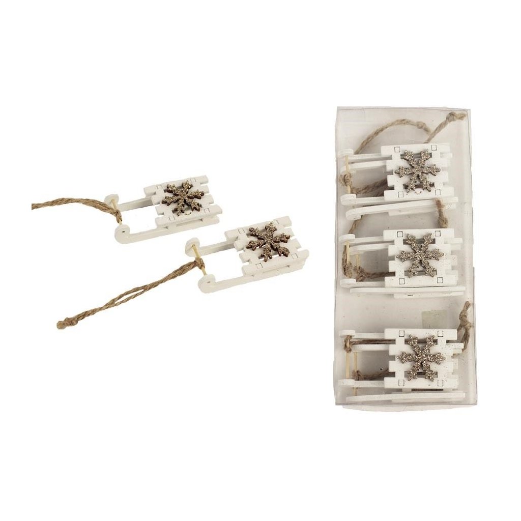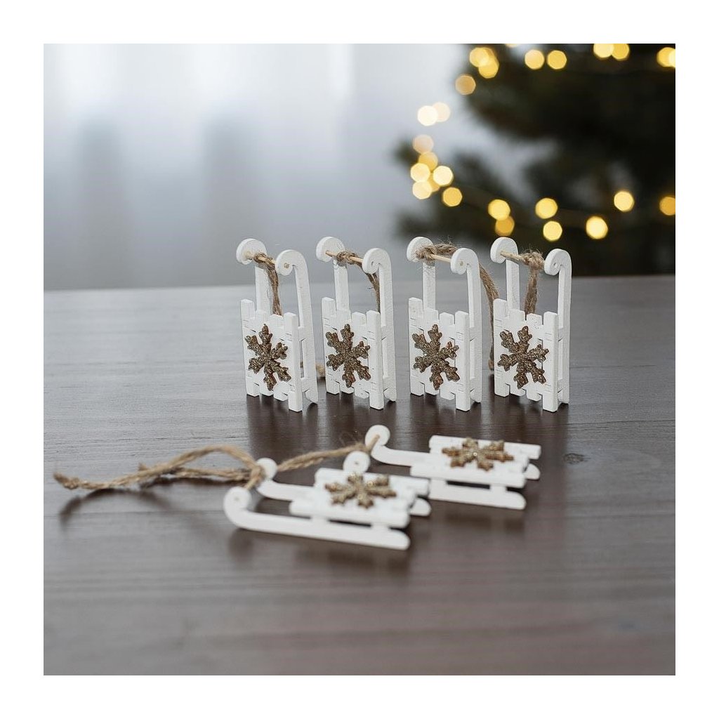 Dekorace sáňky bílé se zlatou vločkou 6 ks.