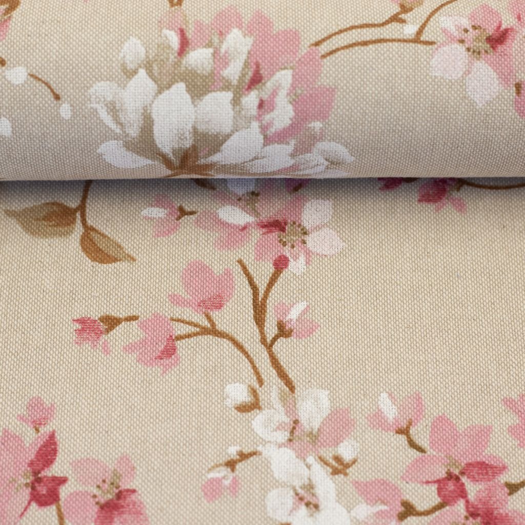 Dekorační látka Petra sakura na béžové je stylová tkanina s přírodním vzhledem lnu, která přináší do vašeho domova jemnost a styl. Tento kvalitní materiál v přírodní béžové barvě je ozvláštněn vzorem květů sakury, které dodávají látce lehkost a hravost.