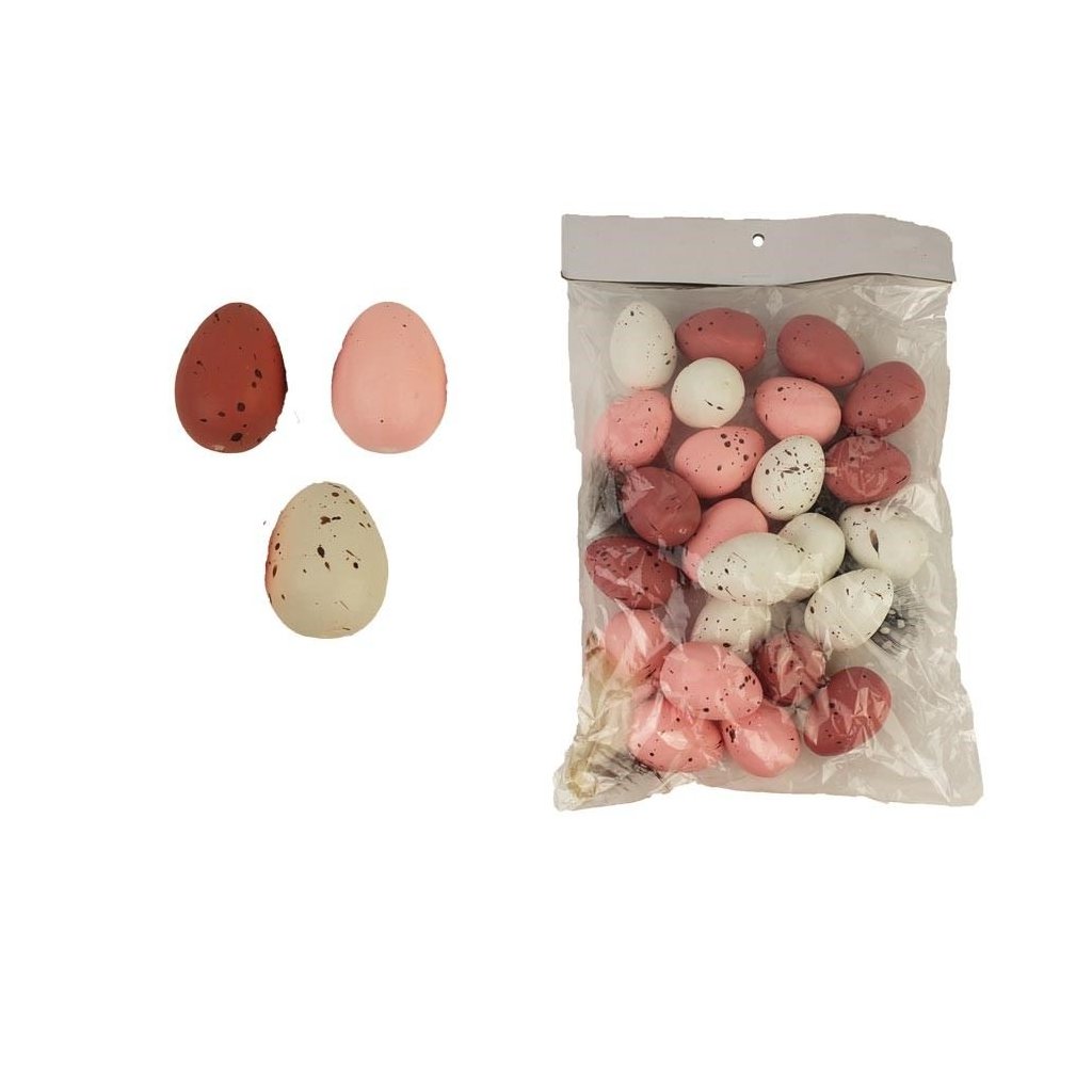 Dekorační růžová vajíčka s peříčky, 24 ks.