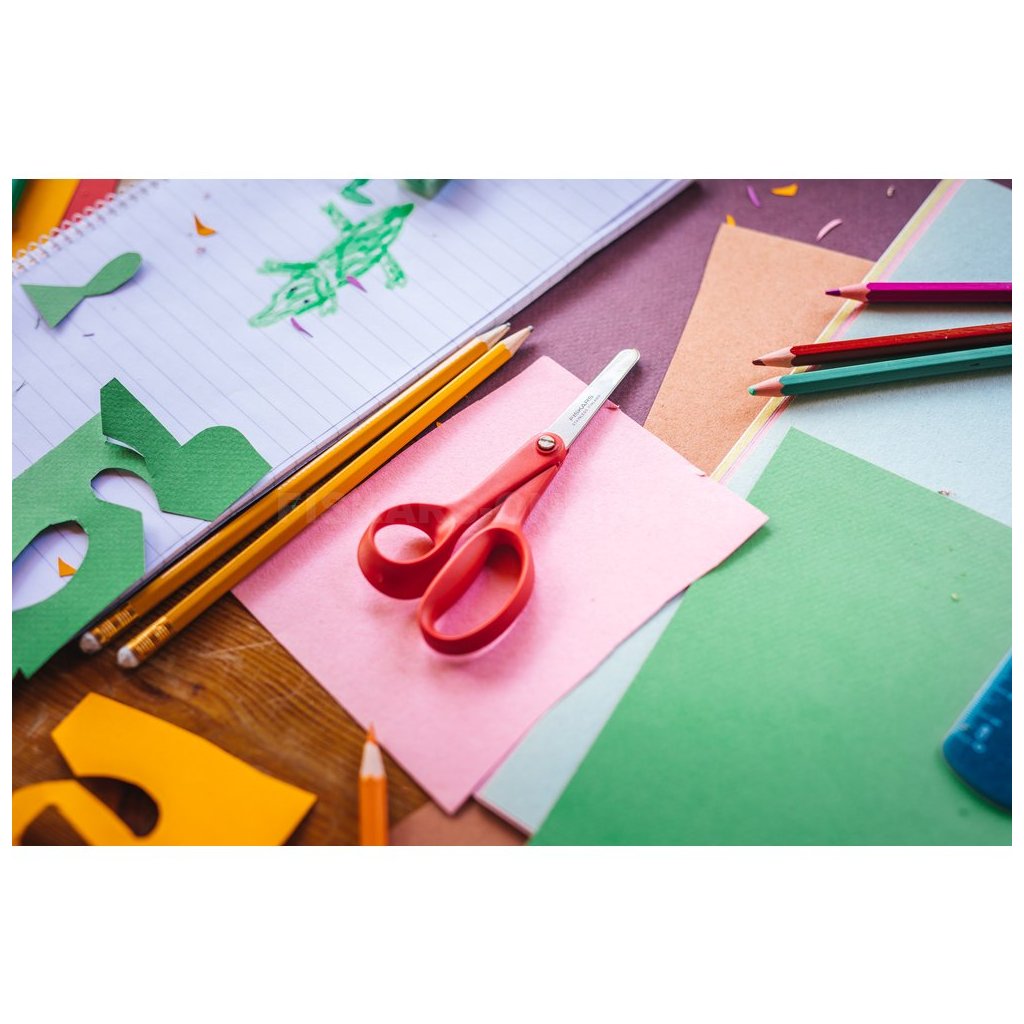 - Ikonické nůžky Fiskars pro děti od 8 let s červenými držadly pro leváky.