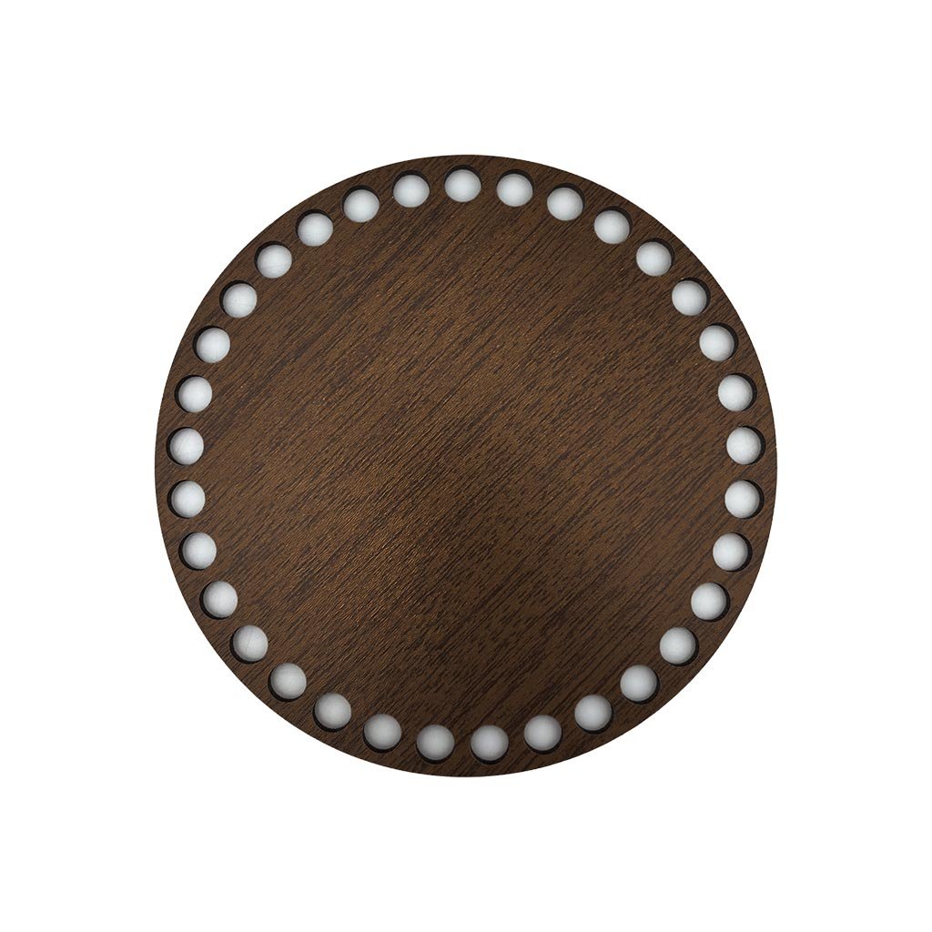 Materiál 3 mm silná oboustranně dekorovaná deska.Využijete jako dno na vlastnoručně vyrobené košíky, docílíte tak hezkého pravidelného tvaru. Průměr děr: cca 9 mm