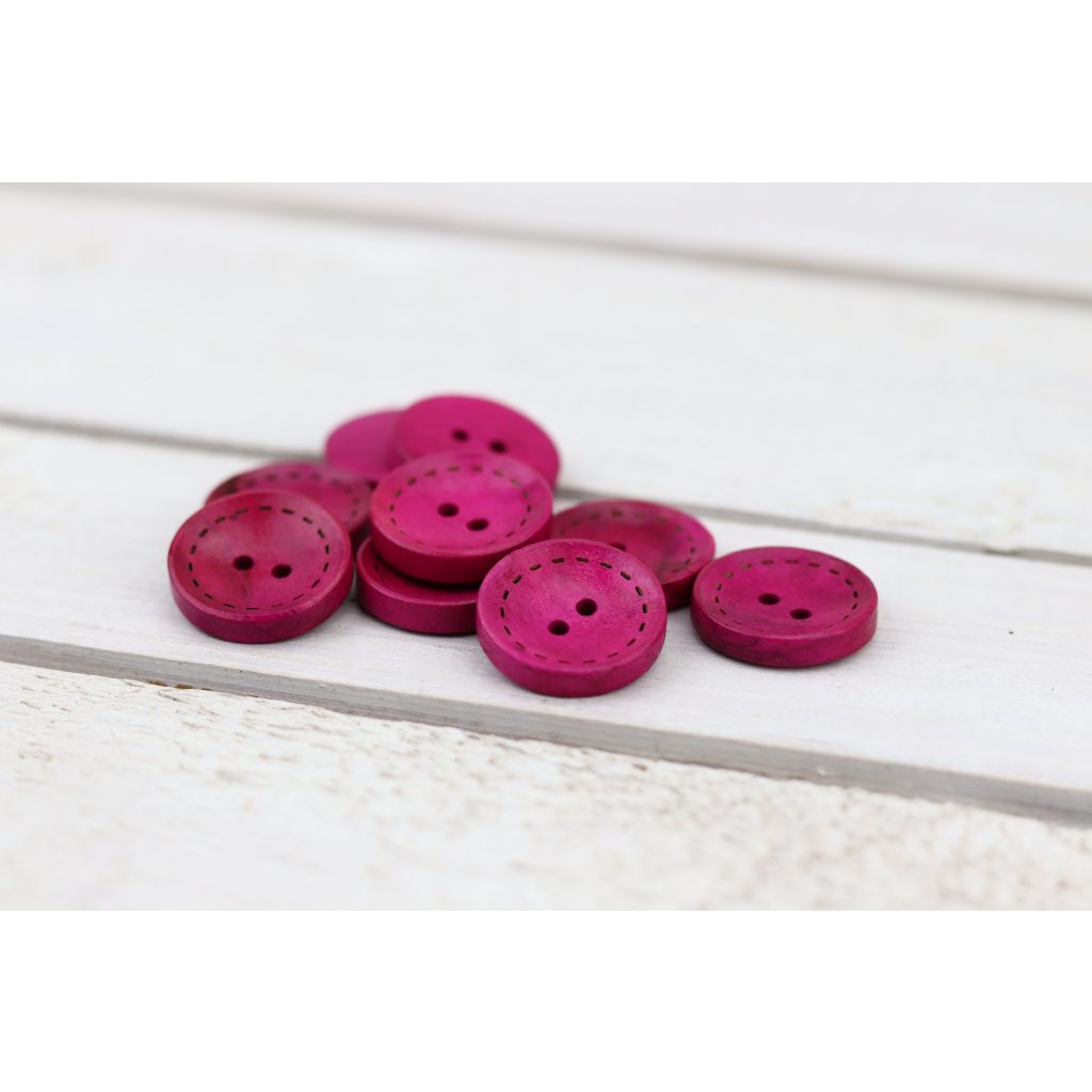 Dřevěný knoflík kulatý s reliéfem štepování Ø 20 mm fuchsiový