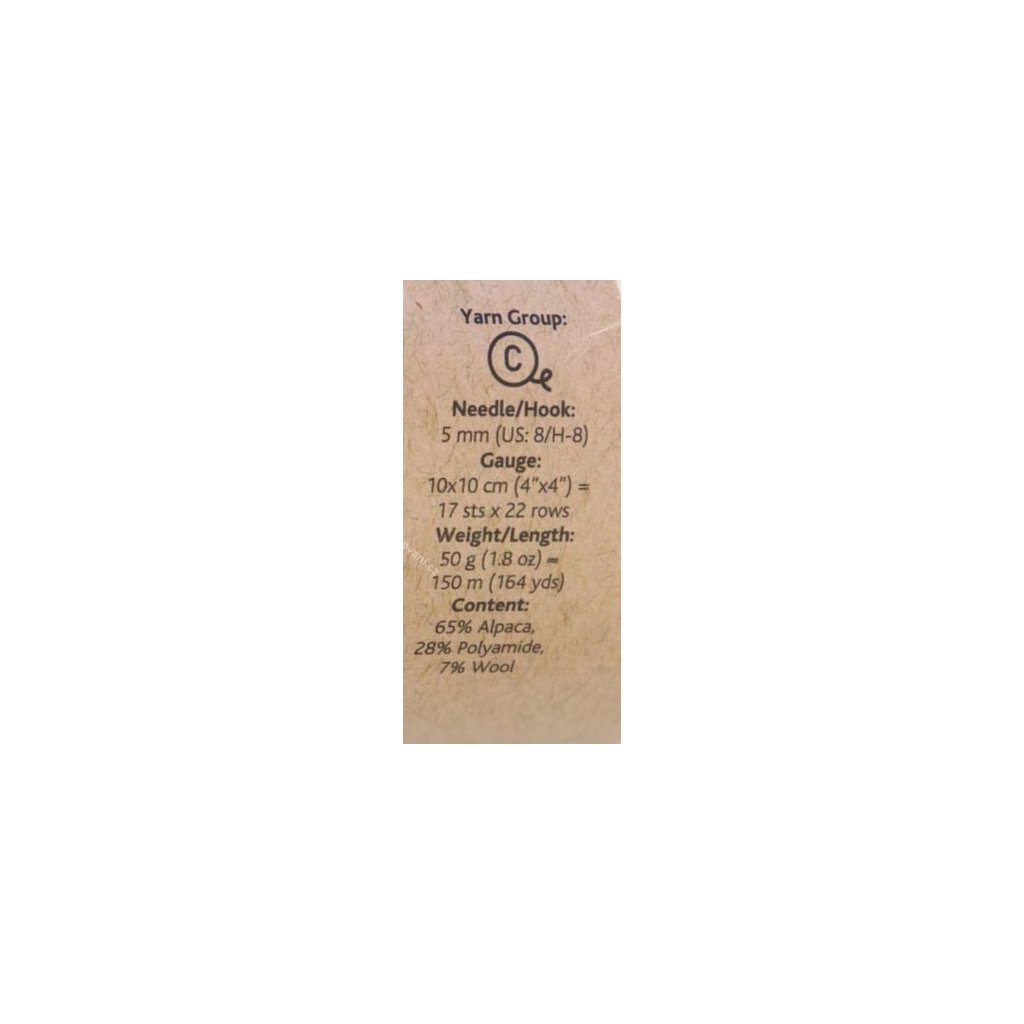 Složení: 65 % alpaka, 28 % polyamid, 7 % merina vlna.