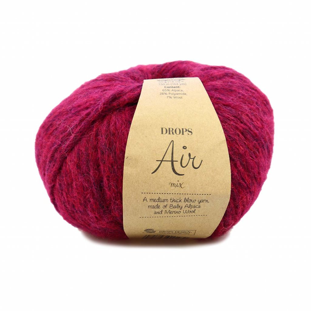 Drops Air je silná vzdušná příze ve složení jemná Baby Alpaka, Merino vlna a polyamid. Jedinečnost této příze je dána zpracováním, kdy jednotlivá vlákna nejsou tradičně skána, ale jsou vzduchem stlačena do dutinky. Díky tomu je výsledný úplet o 30 - 35 % lehčí než úplety z jiných, podobně silných přízí. Krásně vyniknou i plastické vzory.