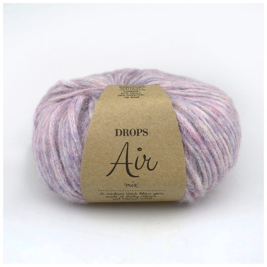 Drops Air je silná vzdušná příze ve složení jemná Baby Alpaka, Merino vlna a polyamid. Jedinečnost této příze je dána zpracováním, kdy jednotlivá vlákna nejsou tradičně skána, ale jsou vzduchem stlačena do dutinky. Díky tomu je výsledný úplet o 30 - 35 % lehčí než úplety z jiných, podobně silných přízí. Krásně vyniknou i plastické vzory.