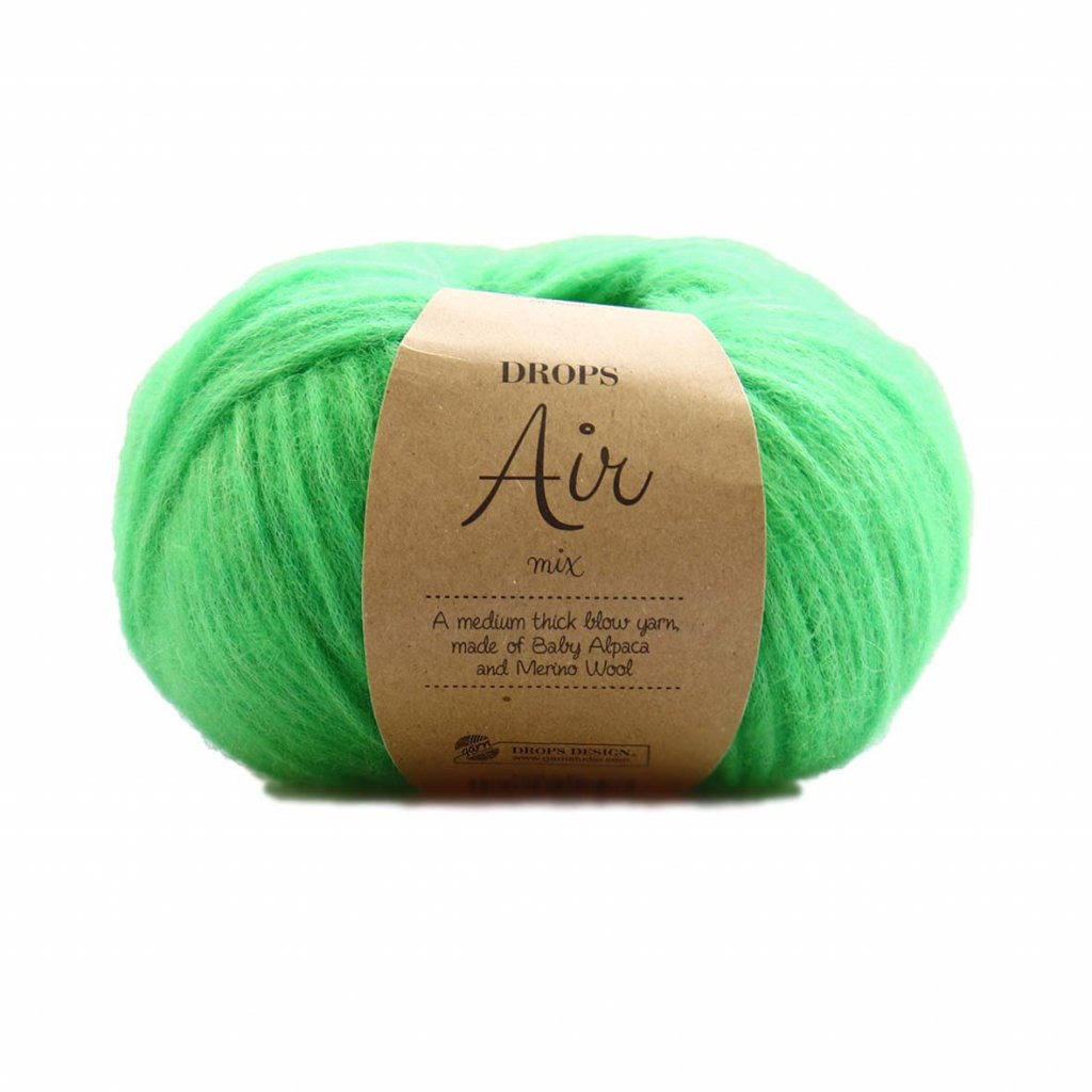 Drops Air je silná vzdušná příze ve složení jemná Baby Alpaka, Merino vlna a polyamid. Jedinečnost této příze je dána zpracováním, kdy jednotlivá vlákna nejsou tradičně skána, ale jsou vzduchem stlačena do dutinky. Díky tomu je výsledný úplet o 30 - 35 % lehčí než úplety z jiných, podobně silných přízí. Krásně vyniknou i plastické vzory.