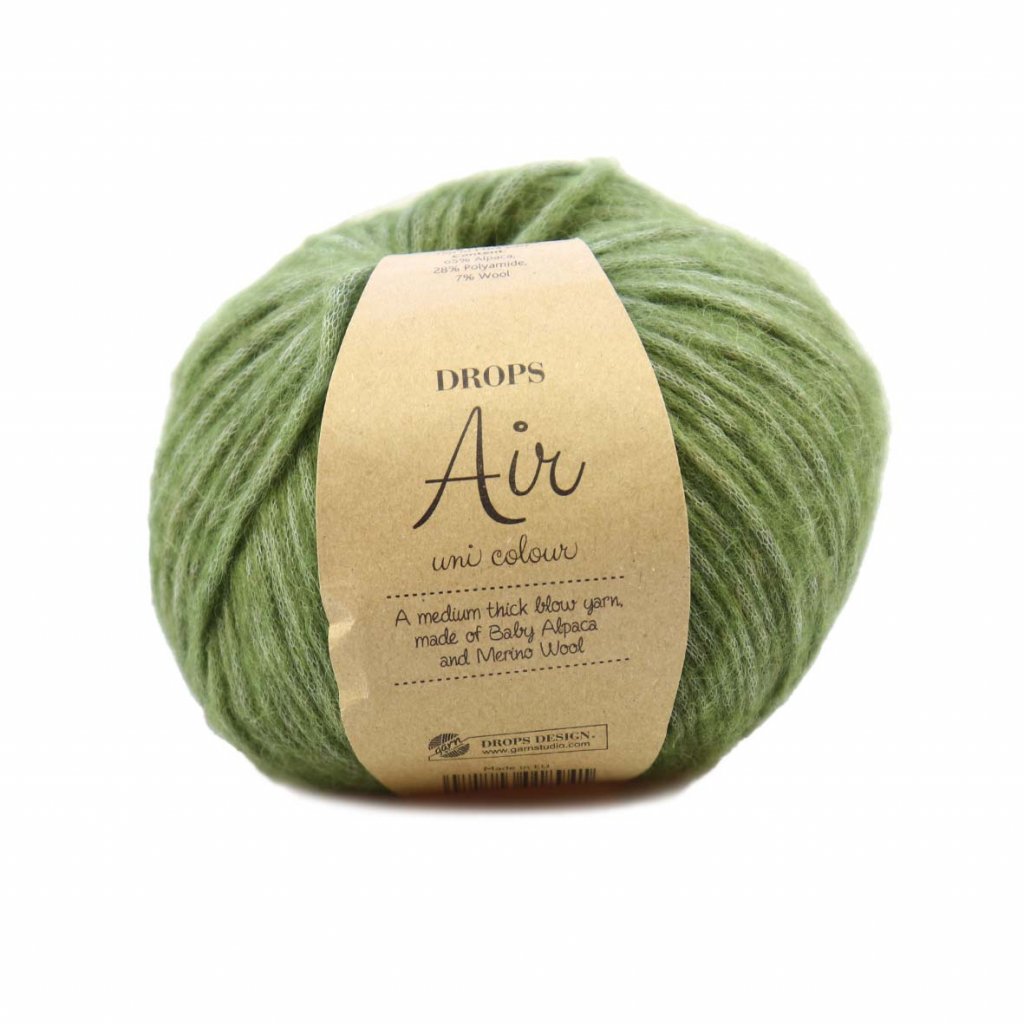 Drops Air je silná vzdušná příze ve složení jemná Baby Alpaka, Merino vlna a polyamid. Jedinečnost této příze je dána zpracováním, kdy jednotlivá vlákna nejsou tradičně skána, ale jsou vzduchem stlačena do dutinky. Díky tomu je výsledný úplet o 30 - 35 % lehčí než úplety z jiných, podobně silných přízí. Krásně vyniknou i plastické vzory.