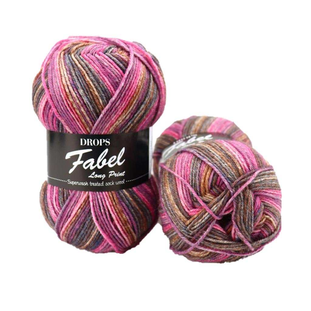 Barevnice příze DROPS Fabel patří k nejrozsáhlejším v naší nabídce a obsahuje 3 typy vzorování: jednobarevné uni colour, vzorující print colour a pruhující long print colour, kde jsou jednotlivé barevné úseky delší. Jak verze print, tak long print, jsou označovány za tzv. samovzorující - každá barevná dávka je jedinečná a může se drobně lišit v intenzitě barev i průběhu vzorování. Takové odchylky nejsou závadou, ale patří k charakteristickým rysům tohoto druhu příze.