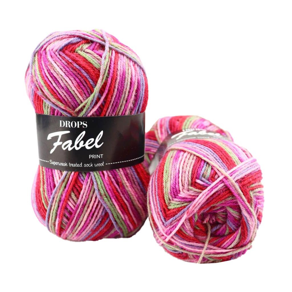 Barevnice příze DROPS Fabel patří k nejrozsáhlejším v naší nabídce a obsahuje 3 typy vzorování: jednobarevné uni colour, vzorující print colour a pruhující long print colour, kde jsou jednotlivé barevné úseky delší. Jak verze print, tak long print, jsou označovány za tzv. samovzorující - každá barevná dávka je jedinečná a může se drobně lišit v intenzitě barev i průběhu vzorování. Takové odchylky nejsou závadou, ale patří k charakteristickým rysům tohoto druhu příze.