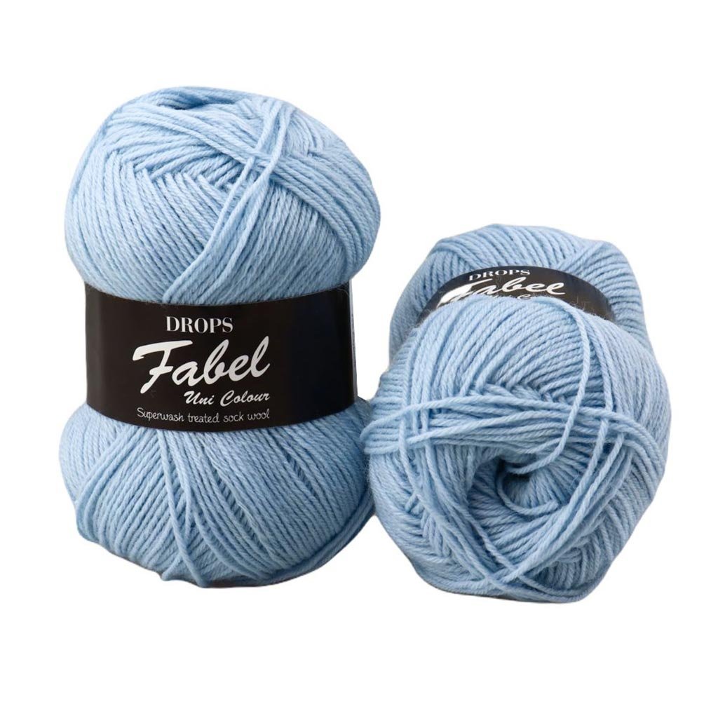 DROPS Fabel je 4vláknová příze spřádána z jemné vlny ošetřené úpravou superwash. Díky tomu lze výrobky z ní snadno udržovat a můžete je prát v pračce. Výsledné vlákno je krásně kulaté a tak příjemné, že přízi lze použít mnohem všestranněji než jen k pletení ponožek. Vyzkoušejte ji při pletení některého z modelů pro miminka či malé děti!