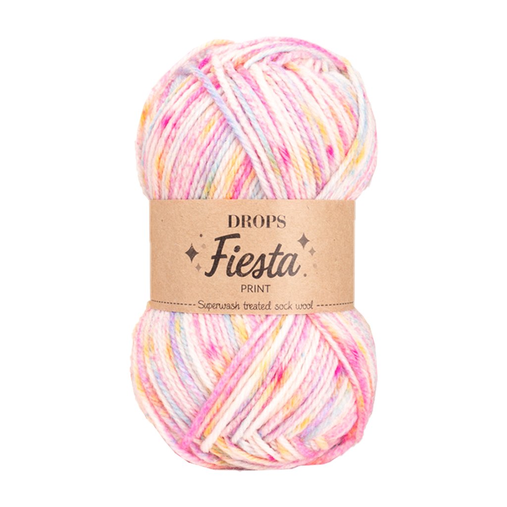 DROPS Fiesta je zářivá a odolná 4 vláknová ponožková příze, která je upravená technologií superwash, takže ji lze prát v pračce a snadno se udržuje.