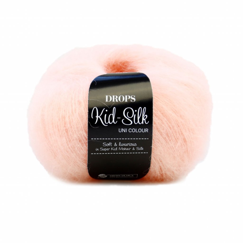 Příze Drops Kid-Silk je směsí 75 % kid mohéru a 25 % morušového hedvábí. Jedná se o luxusní, vzdušnou a velmi jemnou přízi s vlasem, kterou doporučujeme na lehké úplety jako jsou krajkové šály, plédy, pelerínky, bolerka či něžné svetříky i šaty. Používá se samostatně nebo se kombinuje s jinými přízemi.