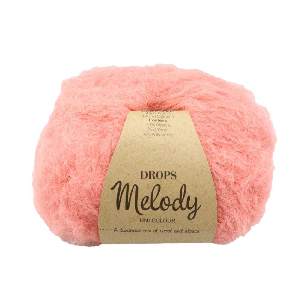 Příze Drops Melody je mimořádně měkká a lehoučká, a proto se hodí na objemné úplety stejně dobře, jako na doplňky. Na silných jehlicích rychle přibývá na objemu, nikoli však na váze, proto je ideální i na svetry, ponča či větší šály. Přízi lze rovněž využít jako efektní příplet společně s jiným typem příze - úpletu dodá objem a zjemní ji.