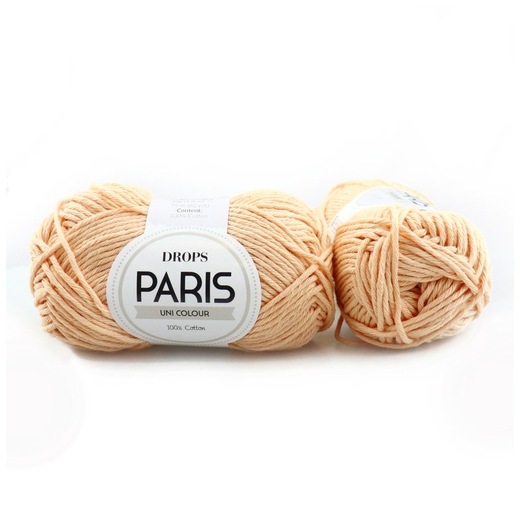 Příze DROPS Paris je tvořena velkým množství tenkých vláken 100% bavlny. Je měkká, nedráždivá, vhodná i pro osoby s citlivou pokožkou, dobře se z ní plete i háčkuje. Výsledný úplet má jemný rustikální nádech.