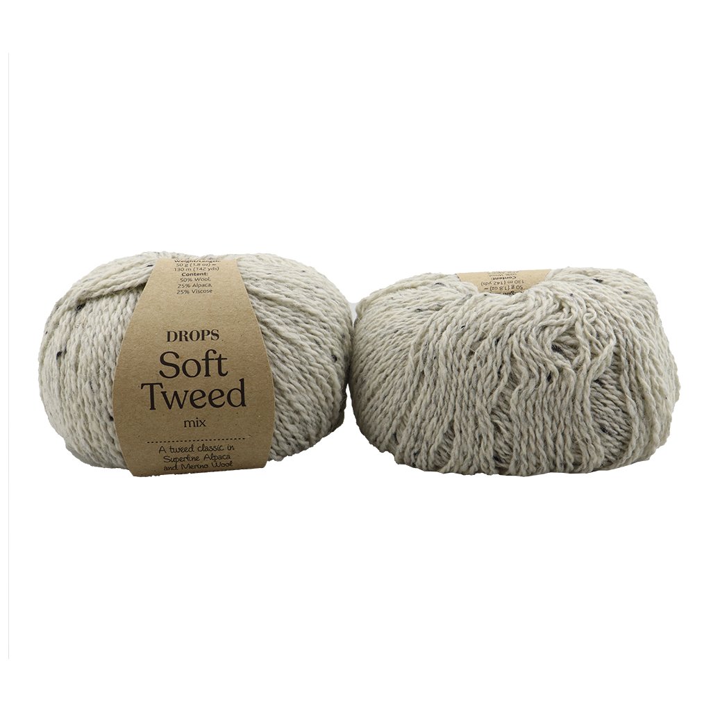 DROPS Soft Tweed je krásně jemná a měkká příze s tvídovým efektem. Vzniká mykáním jednotlivých vláken merino vlny, alpaky a viskózy společně s drobnými plstěnými “tvídovými nopky", které této přízi dodávají charakteristické probarvení.