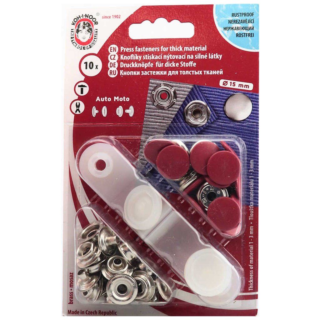 Nýtovací knoflíky AUTO-MOTO, o průměru 15 mm jsou vhodné ke spojování silnějších látek.