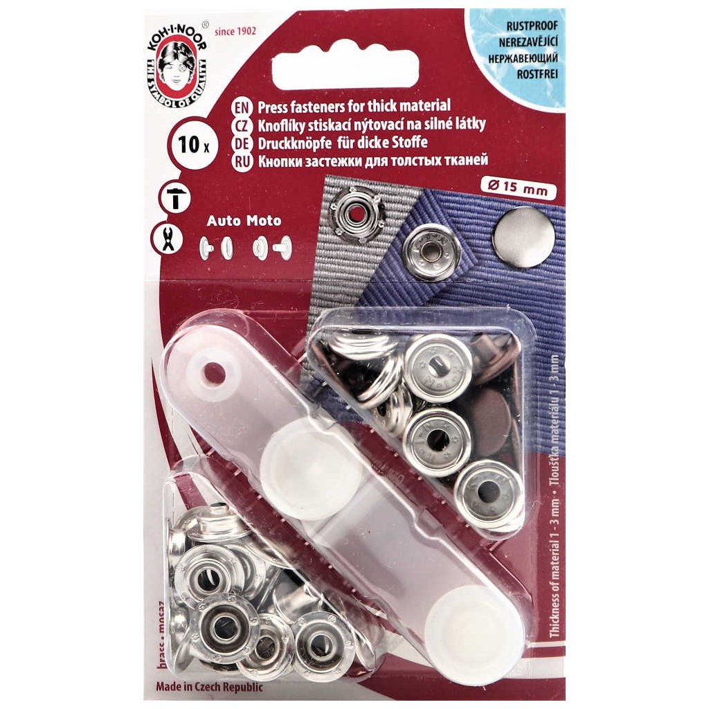 Nýtovací knoflíky AUTO-MOTO, o průměru 15 mm jsou vhodné ke spojování silnějších látek.